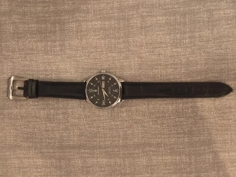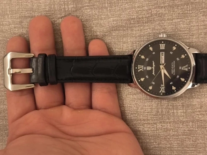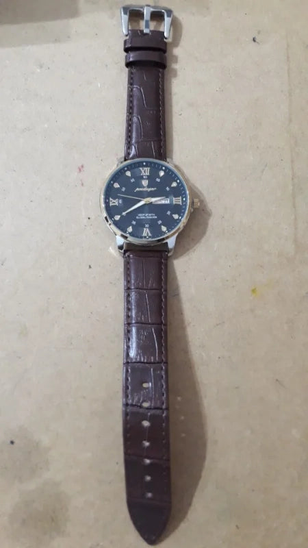 Command attention with a watch that redefines classic sophistication. Featuring luminous roman numerals and a rich leather strap, it’s the perfect touch for the modern gentleman who values enduring style and impeccable taste. Your statement piece awaits.